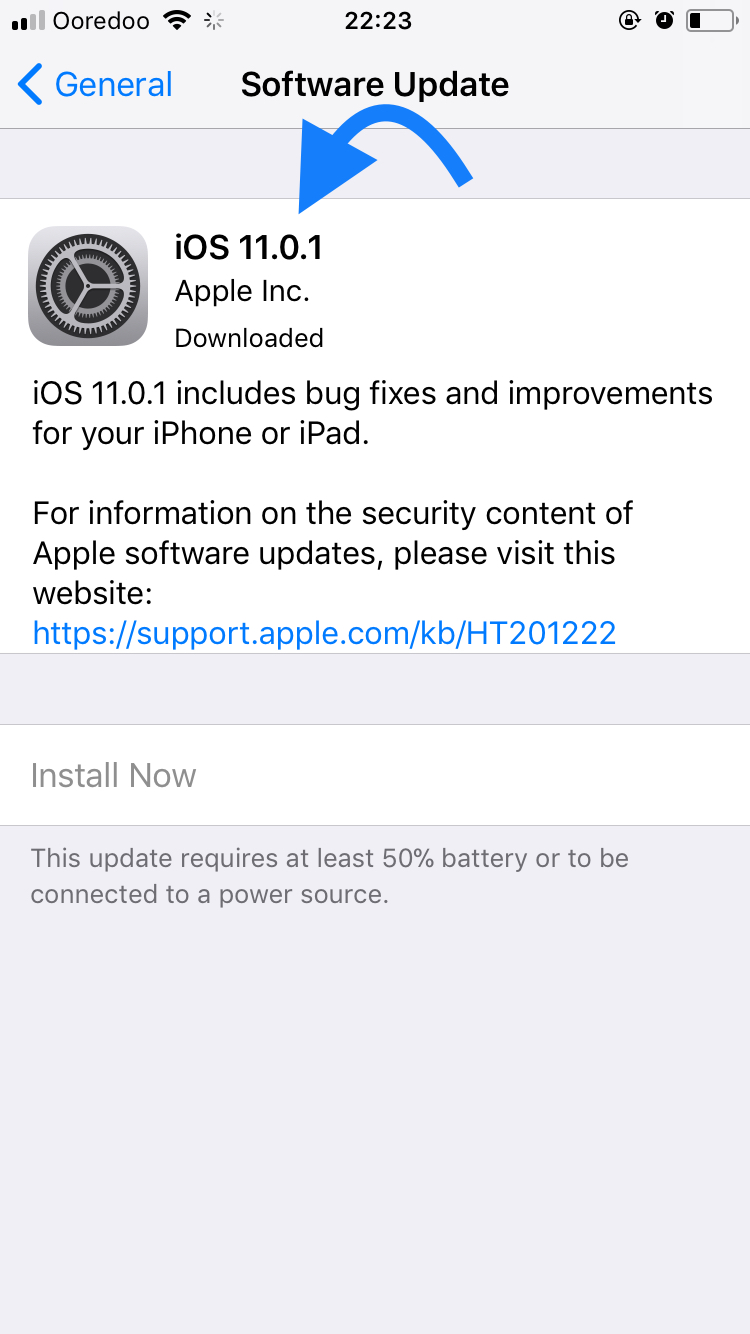 أصدرت شركة أبل التحديث الأول للنظام iOS 11 والذي يأتي بالرقم 11.0.1 وذلك بعد أسبوع فقط من إطلاقه لمستخدمي الآيفون والآيباد والآيبود.